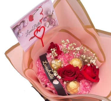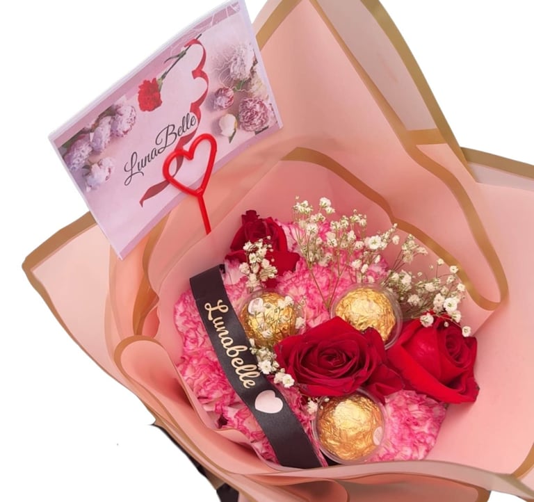 « Un petit geste, un grand sourire : quelques roses et un peu de douceur chocolatée pour toucher le cœur de ceux que vous aimez. »